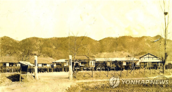 | ▲ '황국신민 서사비'가 발견됐던 충북 옥천 옛 창명보통학교(현 죽향초)의 일제 강점기 때 조회 장면 (사진=연합뉴스) |