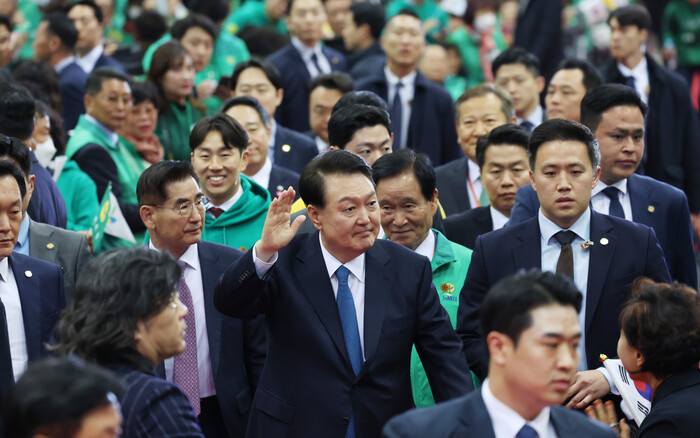 | ▲전국새마을지도자 대회 참석하며 연설한 윤석열 대통령 (사진=연합뉴스) |