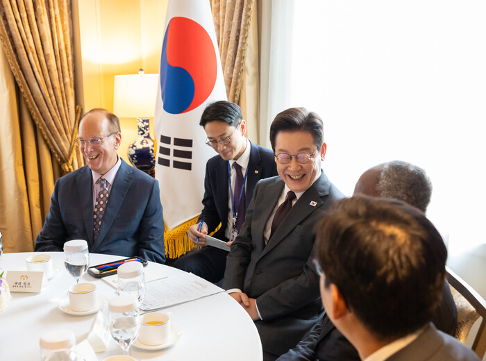 유엔총회 참석차 미국을 방문 중인 이재명 대통령이 22일(현지시간) 세계 최대 자산운용사 블랙록의 래리 핑크 회장(세계경제포럼 의장)을 접견하고, 한국을 아시아·태평양 지역의 AI(인공지능) 허브로 육성하기 위한 협력 방안을 논의했다.