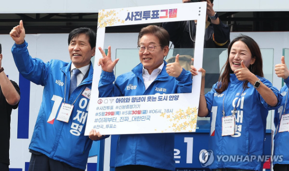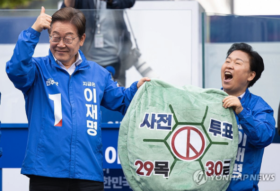 | ▲ 더불어민주당 이재명 대선 후보가 사전투표를 독려하고 있다. 2025.5.24 (사진=연합뉴스) |