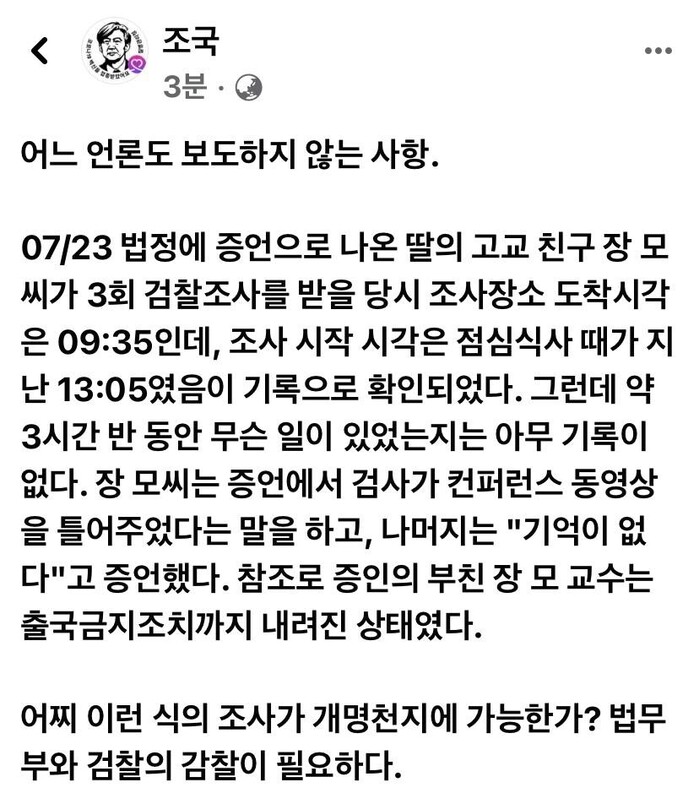 -조국 전 장관,제 딸을 보았다는 여러 증인들은 허깨비를 본 것이냐”