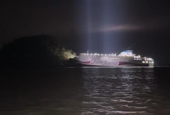 | ▲ 19일 오후 8시 17분께 전남 신안군 장산도 남방 족도에 여객선 퀸제누비아2호가 좌초돼 해경이 구조 작업을 벌이고 있다. 2025.11.19 (사진=연합뉴스) |