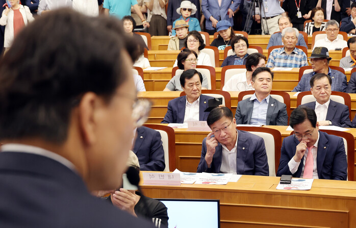 | ▲ 여의도 국회박물관에서 열린 긴급토론회 '무엇을 할 것인가?, 자유공화 리셋코리아를 위하여'에서 국민의힘 송언석 비상대책위원장 겸 원내대표가 윤상현 의원의 발언을 듣고 있다. 2025.7.14 (사진=연합뉴스) |