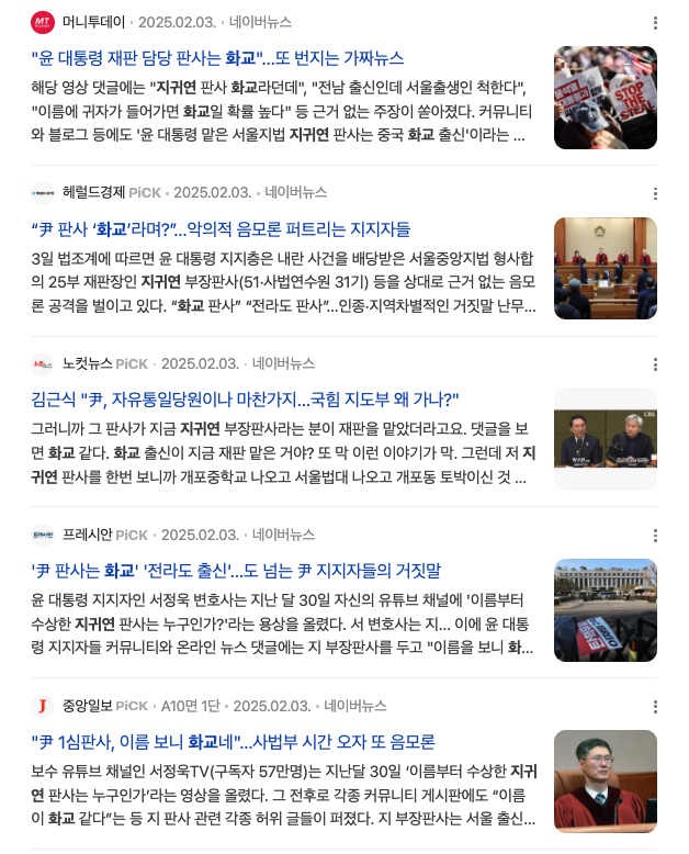 현재 온라인상에서는 지 판사의 이름이 적힌 페이스북, 유튜브, 인스타그램 계정이 갈무리돼 확산되고 있다.