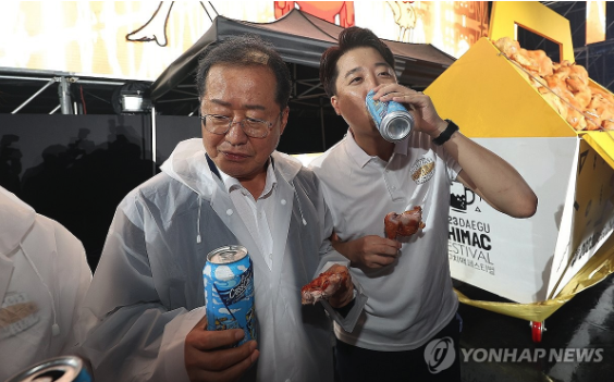 | ▲ 2023.8.30 대구치맥페스티벌 개막싱게 참석한 이준석과 홍준표 (사진=연합뉴스) |