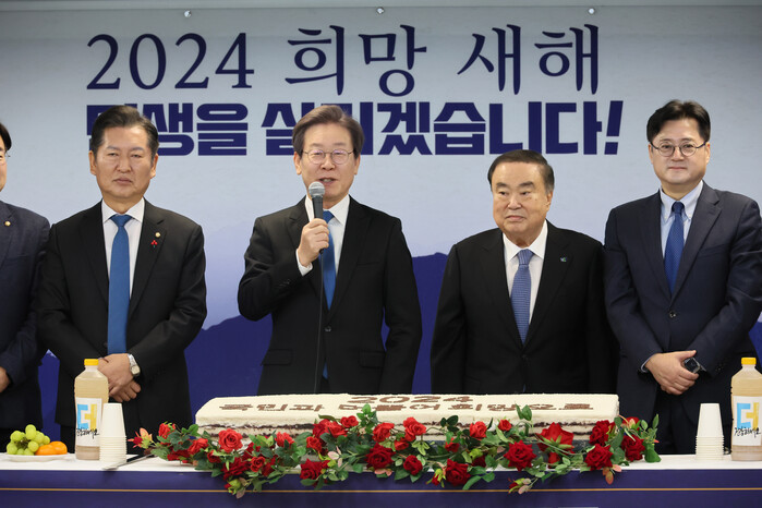 이 대표는 "어려운 이 상황을 우리가 반드시 깨고 더 나은 길, 새로운 길을 찾아가야 한다"며 "청룡의 해, 이 청룡의 힘으로 평화의 위기, 민생의 위기, 민주주의 위기 다 털어내고 새로운 희망으로 더 나은 미래를 향해 함께 힘있게 나아가길 기대한다"고 덧붙였다.