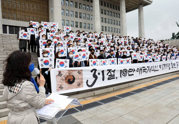 3.1절을 맞아 "김삼열 독립유공자 유족회장을 비롯한 애국지식인 10만명" 이 이재명 더불어민주당 대선후보 지지를 선언했다.