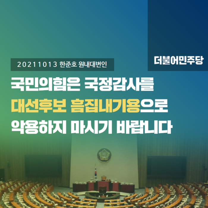 더불어민주당은 국민의힘의 무책임한 정쟁 시도, 국감 무력화 시도를 저지하고, 국가적 과제와 민생 현안을 꼼꼼히 챙기는 국정감사가 될 수 있도록 최선을 다하겠습니다.