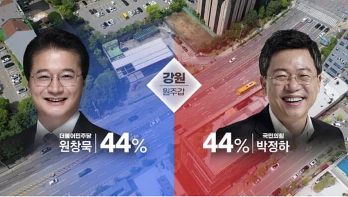| ▲강원 원주갑 KBS-코리아 이서치 여론조사 결과 KBS유튜브 화면 캡쳐 |