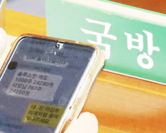 | ▲예결위 중 주식거래 문자 주고받은 신원식 국방부 장관 (커뮤니티 캡쳐) |