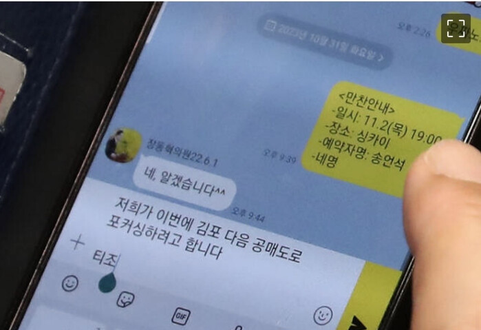 이어 송언석 의원은 지난 3일 예산결산특별위원회 회의장에서 장동혁 원내대변인에게 "저희가 이번에 김포 다음 공매도로 포커싱하려고 한다"고 문자메시지를 보내는 장면이 포착됐다.