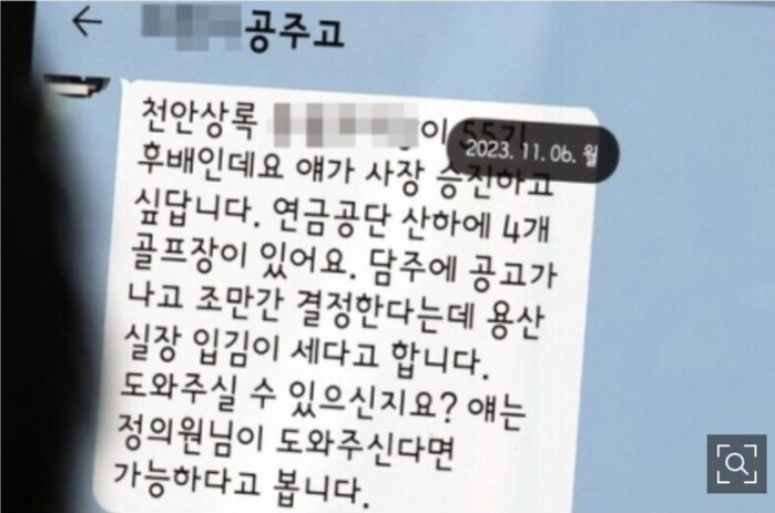 | ▲송언석 의원 문자 화면 (커뮤니티 캡쳐) |