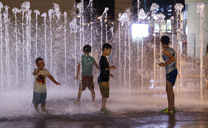 | ▲분수에서 열대야를 피하는 어린이들 (사진=연합뉴스) |