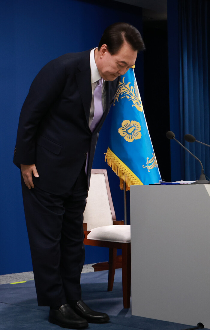 윤 대통령은 이날 용산 대통령실에서 한 대국민 담화·기자회견에서 "민생을 위해, 대한민국의 미래를 위해 시작한 일들이 국민 여러분께 불편을 드리기도 하였고, 제 주변의 일로 국민께 염려를 드리기도 했다"