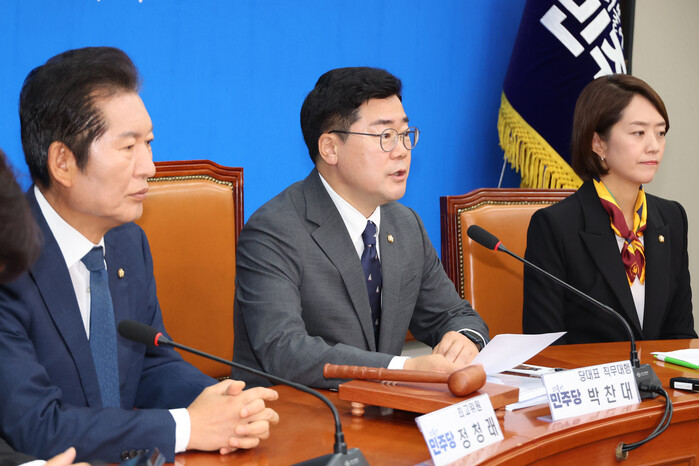 | ▲정청래 의원과 나란히 앉은 박찬대 원내대표 (사진=연합뉴스) |