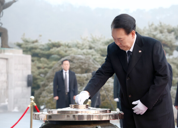 집권 3년차를 맞이한 윤석열 대통령과 국무위원들은 국립서울 현충원 참배를 첫 공식일정으로 시작했다.