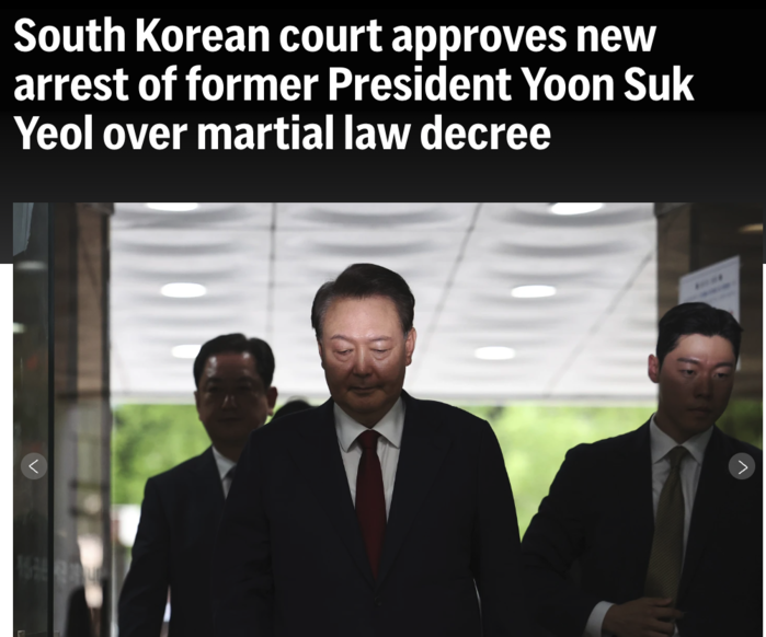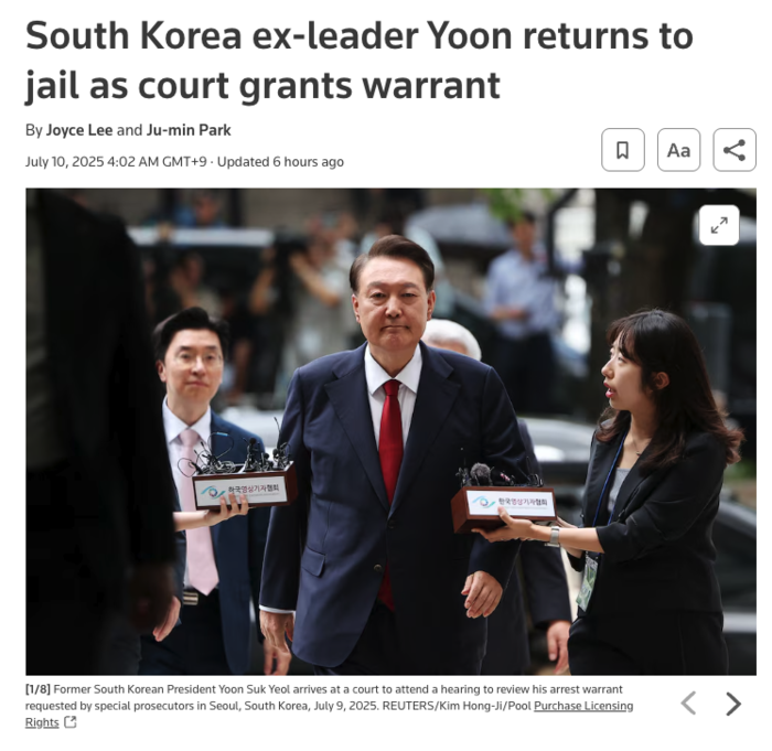 뉴욕타임스는 “내란 혐의로 이미 재판을 받고 있는 윤석열이 특검에 의해 추가 범죄 혐의로 다시 체포돼 구치소로 돌아가게 됐다”고 보도했다. 뉴욕타임스는 “그는 한국 역사상, 재임 중 기소된 첫 대통령이 됐다”고 강조했다.