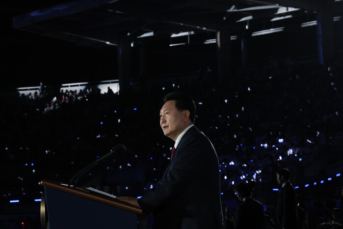 | ▲전국체전 개회식 기념사하는 윤대통령 (사진=연합뉴스) |