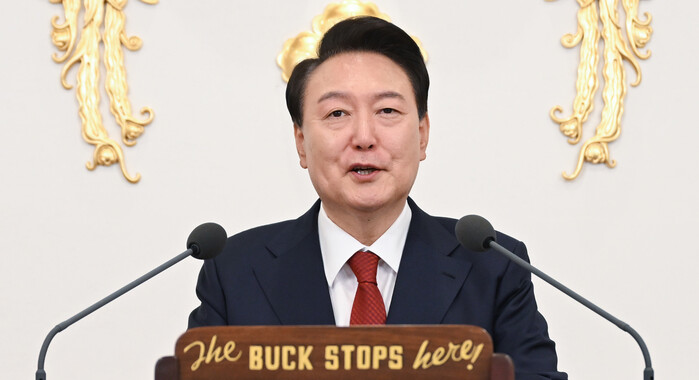 2024년 오전 10시부터 140분간의 윤석열 대통령의 기자회견은 그야말로 거짓말과 발뺌·횡설수설·변명으로 뒤범벅이 된 비겁하고 졸열한 회견으로 시간을 다 보낸 역대 최악의 대국민 기자회견이었다. 아직도 그의 책상 위에는 “the BUCK STOPS here!”라는 명패가 놓여 있는데 자신의 육성 녹취조차 무시한 윤 대통령의 기자회견을 들으면 마치 박근혜의 유체이탈 화법을 연상케 했다. ‘무제한 끝장 기자회견’이라더니 MBC·JTBC 기자에게는 질문 기회조차 주지 않은 ‘확증편향’이 무제한 끝장 회견인가.