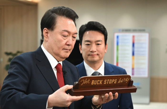 | ▲ "the BUCK STOP here" 모든 책임은 내가 진다 (사진=대통령실) |