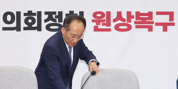 추 원내대표는 이날 국회 원내대책회의에서 민주당이 당헌·당규를 고쳐 대선에 출마하는 당 대표의 사퇴 시한에 예외를 두도록 한 것과 관련해 "이제 민주당은 이재명의, 이재명에 의한, 이재명을 위한 '이재명 1인 지배정당'이 됐다"고 말했다.