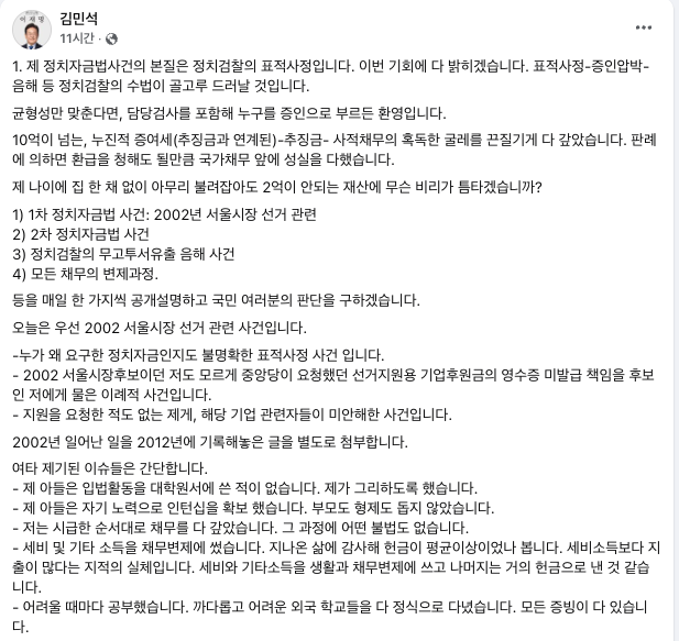 | ▲ 2025.6.16 김민석 국무총리 후보자의 게시글 (출처=김민석 페이스북) |