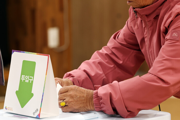 야권 단일 후보로 선출된 더불어민주당 김경지 후보는 오전 9시 금정구청에 마련된 사전투표소에서 투표했다.