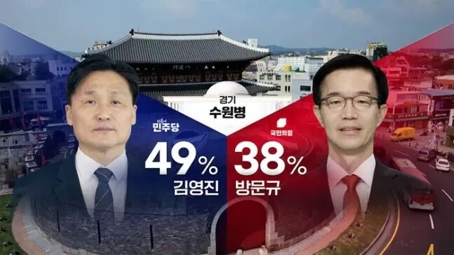 | ▲경기 수원병 SBS-입소스 격전지 여론조사 결과 유튜브 화면 캡쳐 |