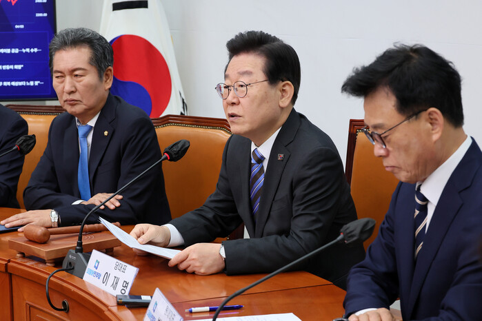 | ▲최고위원회에서 모두발언중인 이재명 당 대표 (사진 출처=더불어민주당 보도자료) |