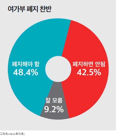 -여가부 폐지 놓고 남녀 찬반 분열…남성 찬성 61.4% 대 여성 반대 51.9%.