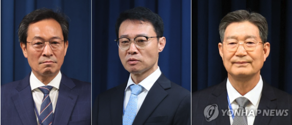 | ▲ 왼쪽부터 우상호 정무수석, 이규연 홍보소통수석, 오광수 민정수석. 2025.6.8 (사진=연합뉴스) |