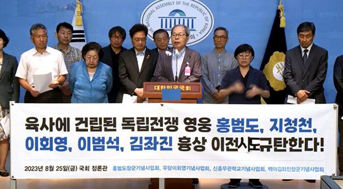 이종걸 전 의원은“흉상 철거는 무장 항일투쟁의 역사를 부정하고 지우려는 것”이라고 지적했다.