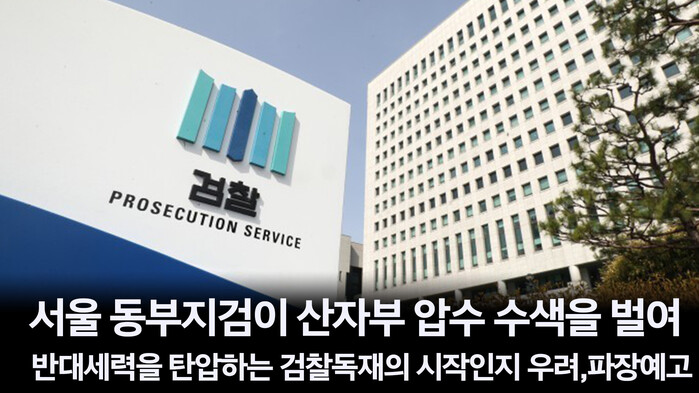 서울 동부지검이 산자부 압수 수색을 벌였다. 문재인 정부에 대한 총부수사로 정부 주도권을 틀어쥐고, 반대세력을 탄압하는 검찰독재의 시작인지 우려하는 목소리가 커지고 있어 파장이 일고 있다.
