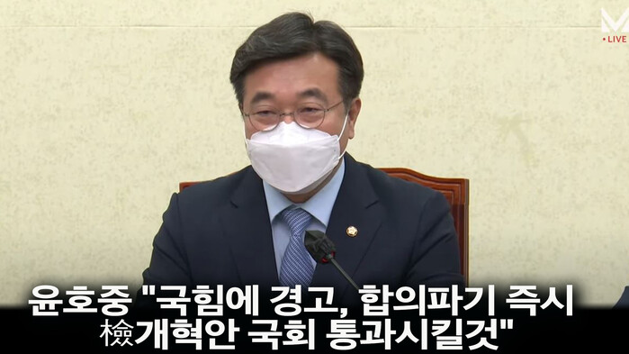 윤호중 "국힘에 경고, 합의파기 즉시 檢개혁안 국회 통과시킬것" 검찰 반발에는 "불법적 집단행동, 반드시 책임 묻겠다"