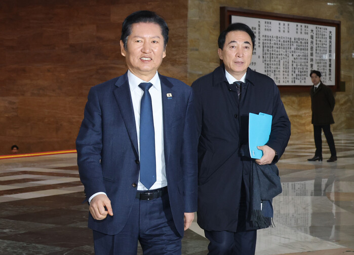 | ▲ 더불어민주당 정청래 대표가 10일 국회에서 조국혁신당과의 합당 논의를 주제로 비공개로 열린 의원총회에 참석하고 있다. 2026.2.10 (사진=연합뉴스) |