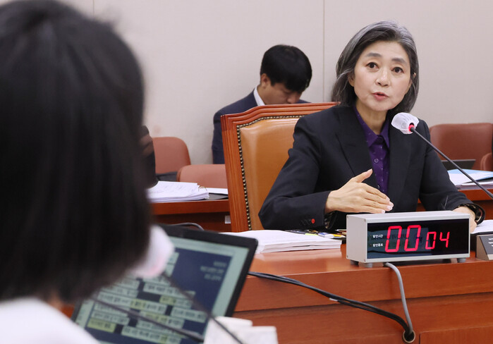 같은 당 장경태 의원은 "딸의 소셜뉴스 주식 거래내역과 회사 지분구조를 명확하게 밝히라"고 요구했고, 김 후보자는 "딸이 원하지 않는다"고 거듭 거부했다.