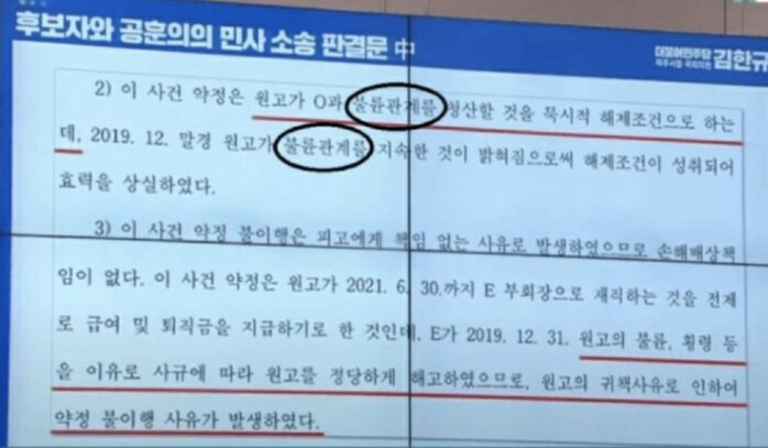 이 문서에는 공 전 대표의 사생활 부분이 노출되어 일부 커뮤니티에서는 이 내용이 김 후보자가 저지른 것으로 잘못 알려지기도 했다.