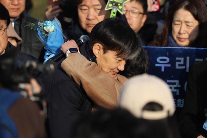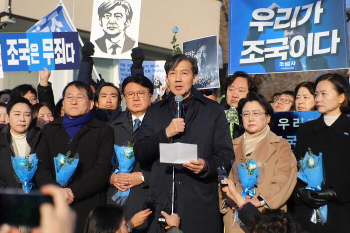 시민들은 조 전 대표가 시야에서 사라질 때까지 "우리가 조국이다", "조국은 무죄다" 등을 외치며 그를 위로했다.