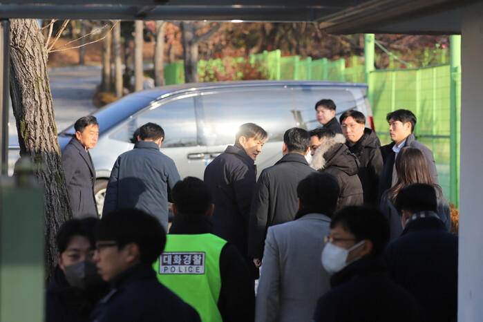 조 전 대표는 차에 올라탈 때까지 자신을 배웅해준 혁신당 의원들과 지지자들을 향해 손을 흔들어 주고 마지막 인사를 했다.