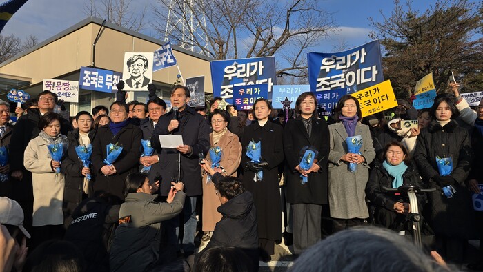 조 전 대표는 “조국혁신당은 윤석열 탄핵을 위해 국민과 함께 싸웠다. 마침내 지난 14일 탄핵 소추안이 통과됐다”며 “내란 수괴 윤석열과 그 공범들은 철저하게 수사 받고 처벌돼야 한다”고 했다.