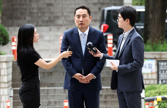| ▲'조민 포르쉐' 발언 재판 선고공판에 출석하는 강용석 (사진=연합뉴스) |