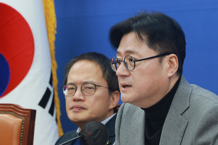 홍 원내대표는 국회에서 열린 정책조정회의에서 "(한동훈 국민의힘 비상대책위원장이) '야당의 특검 추천·결정, 수사 생중계는 독소조항'이라고 하는데 사실이 아니다"라며 "여당 추천권 배제 및 상시 브리핑은 '국정농단 특검', '드루킹 특검'도 동일했다. 한동훈 비대위원장이 적극 참여한 국정농단 특검팀은 정례 브리핑을 아주 잘했는데 본인이 했던 것은 잊은 것 같다"고 강조했다.
