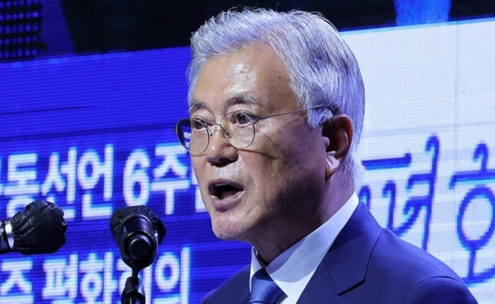 문 전 대통령은 9·19 평양공동선언 6주년을 맞아 20일 열린 '전남평화회의' 기조연설에서 "(현 정부는) '힘에 의한 평화'만을 외치며 대화를 포기하고 사실상 흡수통일 의지를 피력해 상황을 악화시키고 있다"며 "지금 한반도는 한국전쟁 이후 가장 위험하다"고 진단했다.