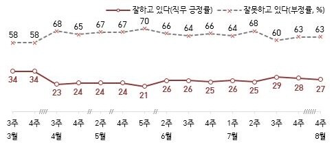 | ▲한국갤럽 대통령지지율 8월 4주차 결과 화면 캡쳐 |