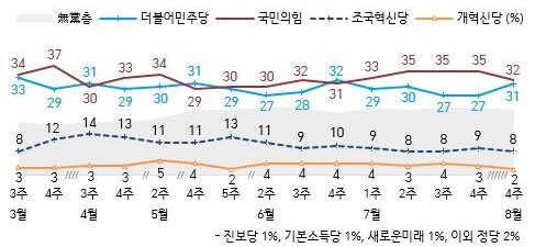 | ▲한국갤럽 주요 정당지지율 조사 8월 4주차 화면 캡쳐 |