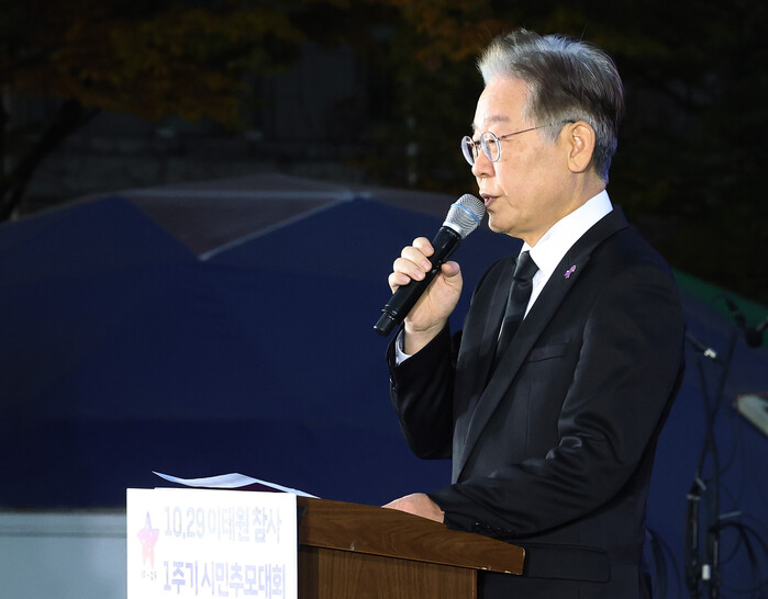 | ▲10·29 이태원참사 추도사하는 이재명 대표 (사진=연합뉴스) |