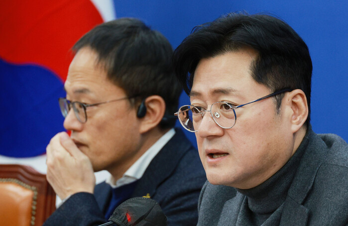 선거제 개편과 관련해 홍 원내대표는 "15일까지 정치개혁특별위원회에서 위성정당 방지에 대한 제도 개선을 합의해 줄 것과 여당이 이에 대해서 전향적인 태도를 (보일 것을) 다시 한번 촉구한다"며 "합의가 안 되면 그에 따른 민주당의 판단을 다시 한번 해야 할 시점"이라고 말했다.