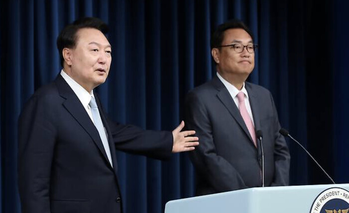 의제가 정해졌냐는 기자의 질문에 윤 대통령은 “영수회담서 이재명 대표 얘기 많이 듣겠다”고 에둘러 답했다.