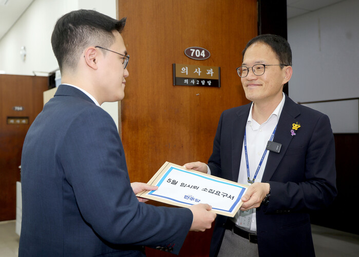 더불어민주당이 26일 5월 임시국회 소집 요구서를 제출했다.