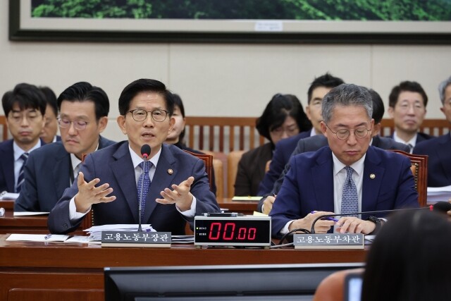| ▲ 10일 국회 환경노동위원회의 고용노동부 국정감사에서 답변하는 김문수 고용노동부장관 (사진 = 연합뉴스) |